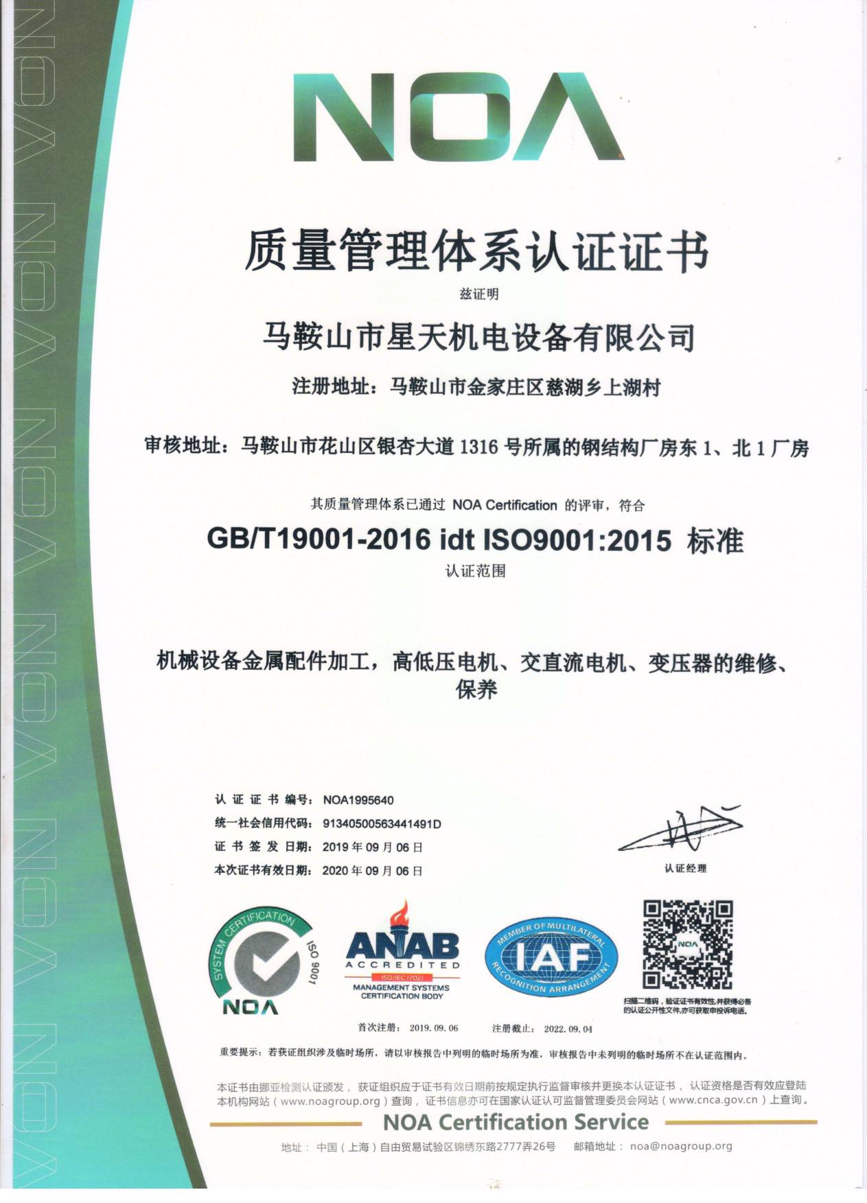 質(zhì)量管理體系證書(shū)