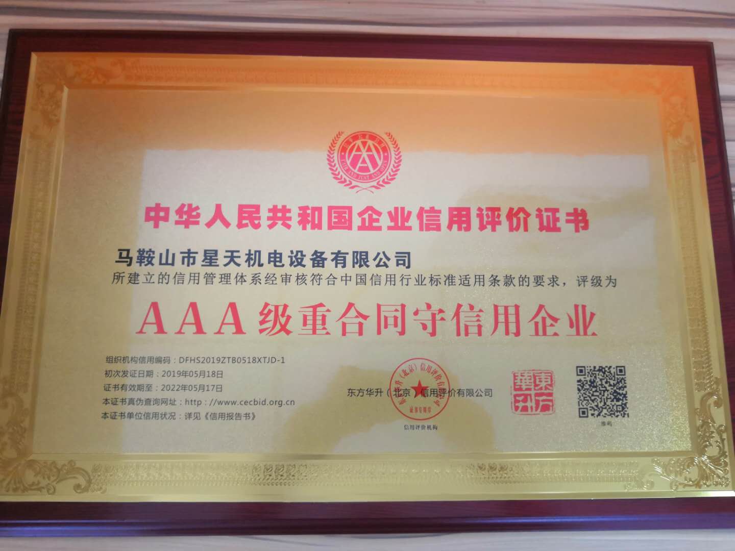 AAA級(jí)重合同守信用企業(yè)